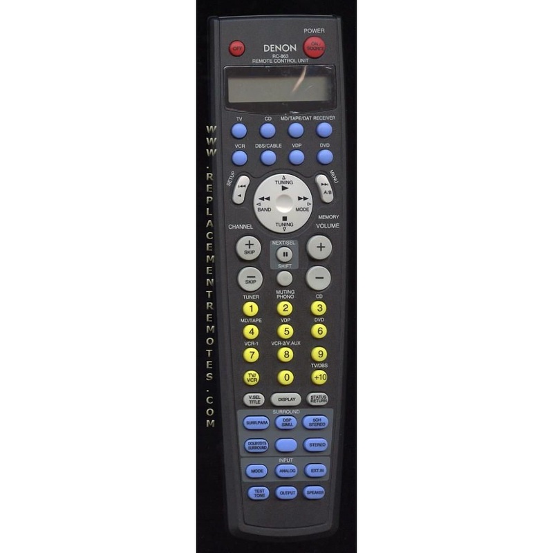 MODEL: RC-863PN: 3990554003Associated Numbers: 3990737008, RC-899DENON RECEIVER REMOTE CONTROL Originally supplied with models: AVCA11SR, AVR1800, AVR1800KE3, AVR87