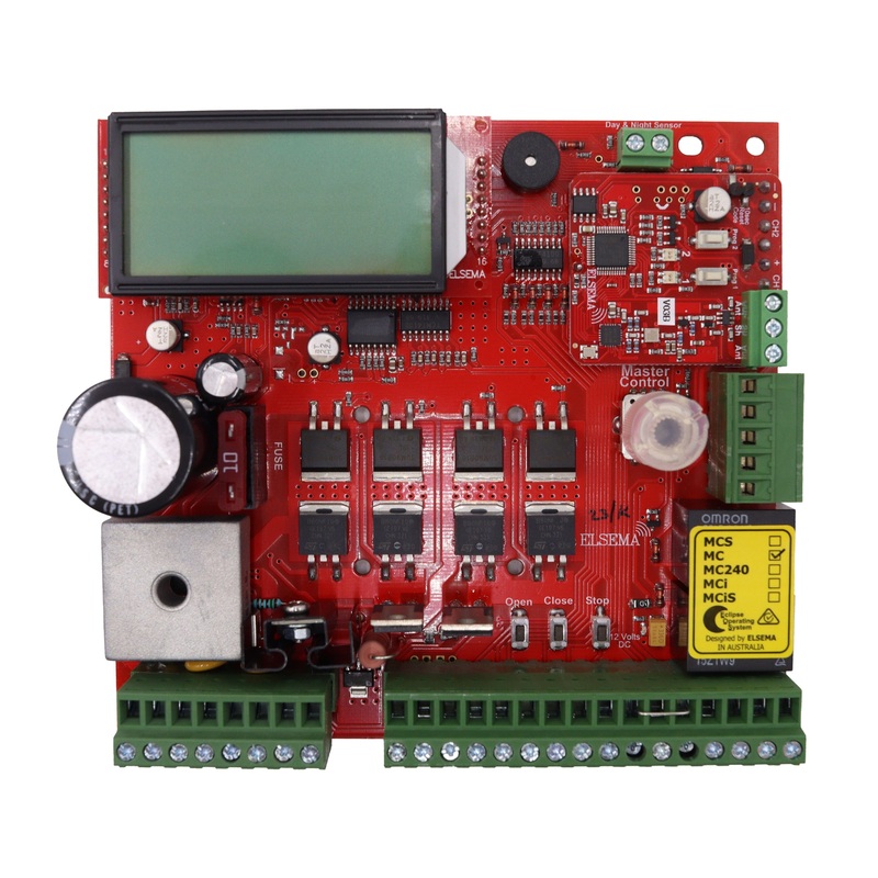 The Elsema Eclipse Double MC Board 12V Or 24V is a user friendly menu driven systemthat uses the 1-touch button to control, setup and run automatic gates, doors and barriers. It uses a large4-line LCD screen showing live reading of the motor performance and status of all inputs and outputs.The MC controller is not just the next generation but the industry game changer. We wanted to create acontroller that is simple to use and does just about any feature required in the gate and door industry.