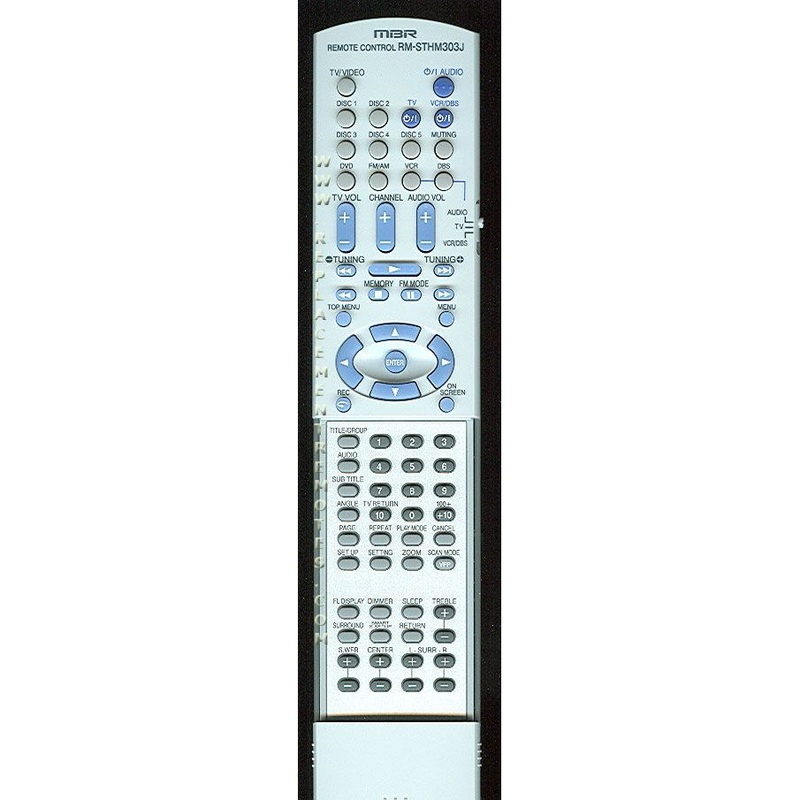 JVC DVD AUDIO REMOTE CONTROL MODEL: RM-STHM303J Registered on 2004-02-04 Originally supplied with models: THM301, THM303, THM303U, THM501, THM505, THM603, THM603U, THM606, XVTHM301, XVTHM303, XVTHM501, XVTHM505, XVTHM603, XVTHM606