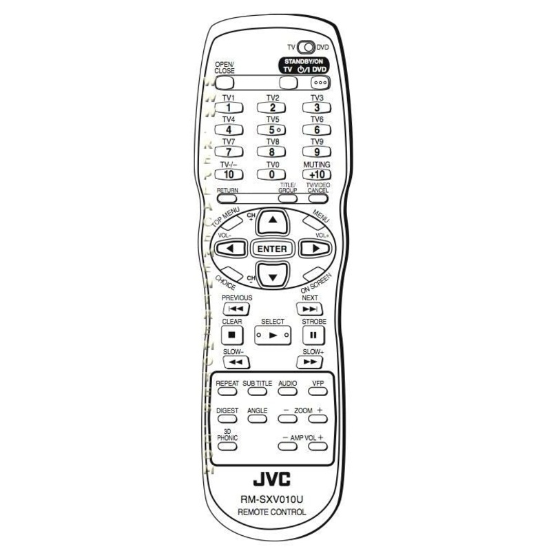 MODEL: RM-SXV010UJVC DVD PLAYER Remote ControlRegistered on 2002-05-08 Originally supplied with models: XVN5SL, XVS500BK, XVS502SL