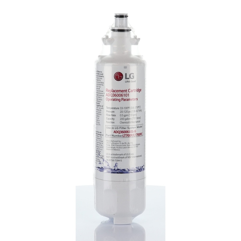 LG LT700P REPLACEMENT 200 GALLON CAPACITY REFRIGERATOR WATER FILTER (ADQ36006101)CHANGING YOUR WATER FILTER IS IMPORTANT AND LG MAKES IT EASY. KEEP YOUR WATER TASTING SUPER CLEAN WITH THE LG LT700P. THIS 6 MONTH/ 200 GALLON CAPACITY REFRIGERATOR WATER FILTER FILTERS CHLORINE TASTE AND ODOR WHILE ALSO REDUCING LEAD, MERCURY, ASBESTOS AND BENZENE. IT PROVIDES YOU AND YOUR FAMILY WITH CLEANER, FRESHER WATER AND ICE. AS A GENUINE LG PART, THIS REPLACEMENT REFRIGERATOR WATER FILTER DELIVERS A HIGH PERFORMANCE QUALITY FILTRATION SYSTEM THAT YOU CAN COUNT ON.