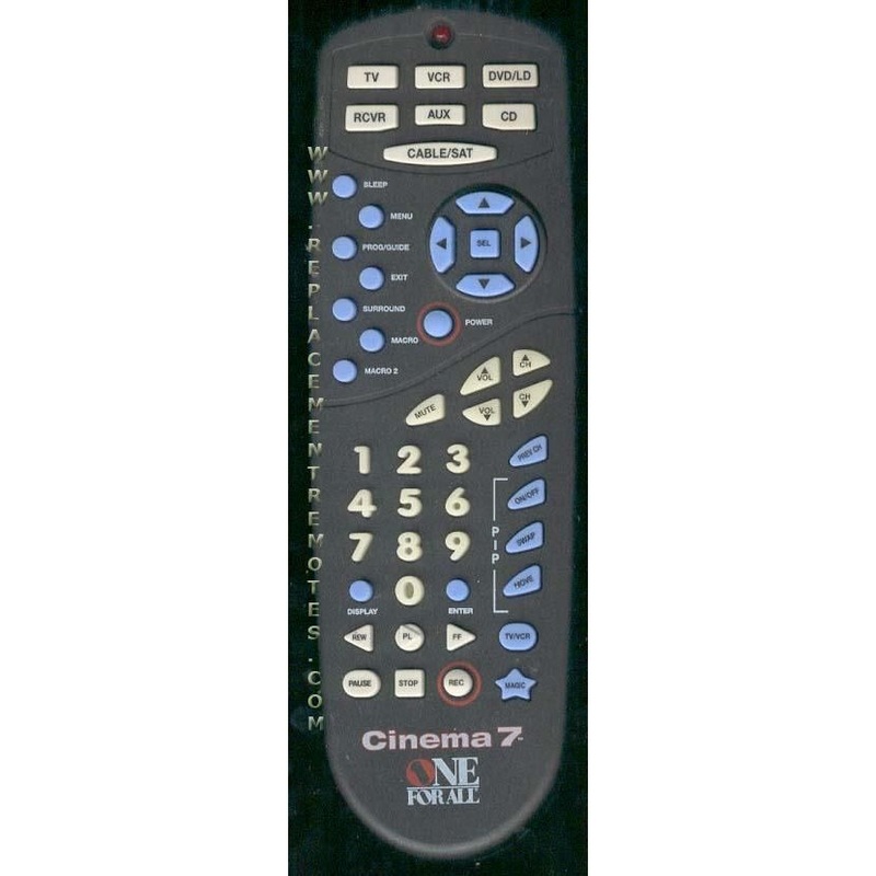 URC7200B00, URC7200 ONE FOR ALL CINEMA 7CONSOLIDATES UP TO 7 DEVICES FEATURES-Macro Keys-Dedicated Menu Keys-PIP Functionality-Program/guide-Surround Sound -Glow in the Dark Channel and volume keys Originally supplied with models: URC7200, URC7201