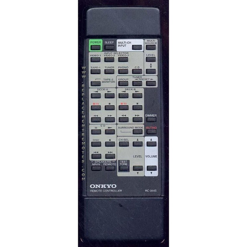 Model: RC-344SP/N: 24140344REPLACED BY: RR478M (No Main, Remote, Tape 2 Monitor buttons) ONKYO AUDIO REMOTE CONTROL Originally supplied with models: ASV240, ASV604, ASV640, AVF5161, MP5100, RK16K, RK61K