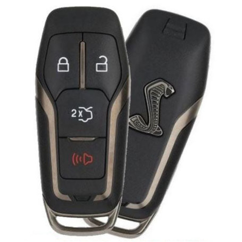 One Smart Keyless Entry Remote Key for Ford Mustang Cobra - brand new with uncut emergency insert key included. Genuine, original OEM (factory Ford) remote. Same as the remote you can purchase at your local Ford dealership. This remote must be professional