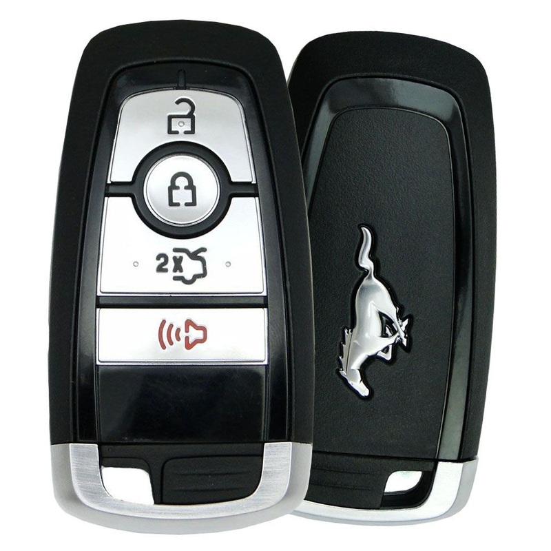 One Ford Mustang Smart Keyless Entry Remote - brand new with uncut emergency insert key included. Genuine, original OEM (factory Ford) remote. Same as the remote you can purchase at your local Ford dealership. This remote must be professionally programmed
