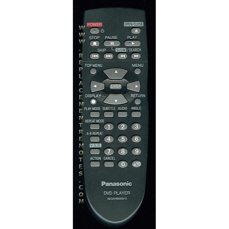 MODEL: N2QAHB000012PANASONIC DVD PLAYER REMOTE CONTROL Originally supplied with models: DVDRP56, DVDRP56CA, DVDRP56U, DVDRV21U, DVDRV26, DVDRV26U, DVDRV26UK, DVDRV31, DVDRV31BLACK, DVDRV31K, DVDRV31SILVE, DVDRV31SILVER, DVDRV31U, DVDRV31UBLAC, DVDRV31UBLAC