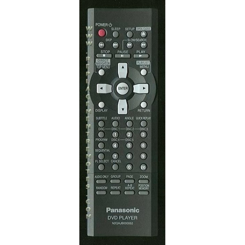N2QAJB000052PANASONIC DVD PLAYER REMOTE CONTROL Originally supplied with models: DVDCP72, DVDCP72P, DVDCP72P/DVD, DVDCP72S, SLSX388P