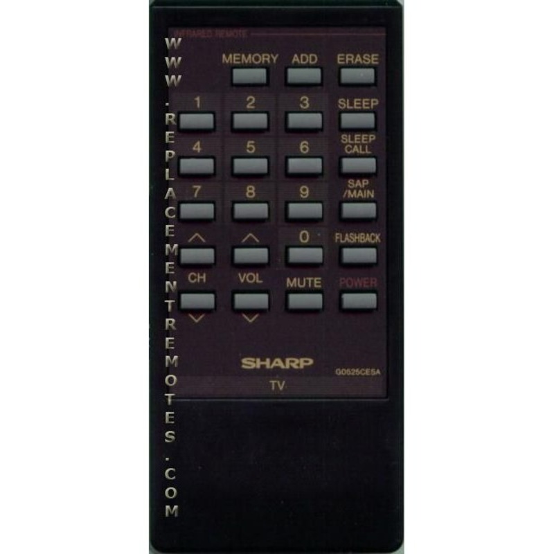 MODEL: G0525CESA P/N: G0525CESA, RRMCG0549CESA SHARP TV REMOTE CONTROL Originally supplied with models: 13NV58, 13NV68, 13NV68BK, 13RM59, 13RV629, 13RV649, 13RV659, 13RV69, 13SB50, 19NV88, 19NV88BK, 20NV78, 20NV78BK, 25NV88, 25NV88BK