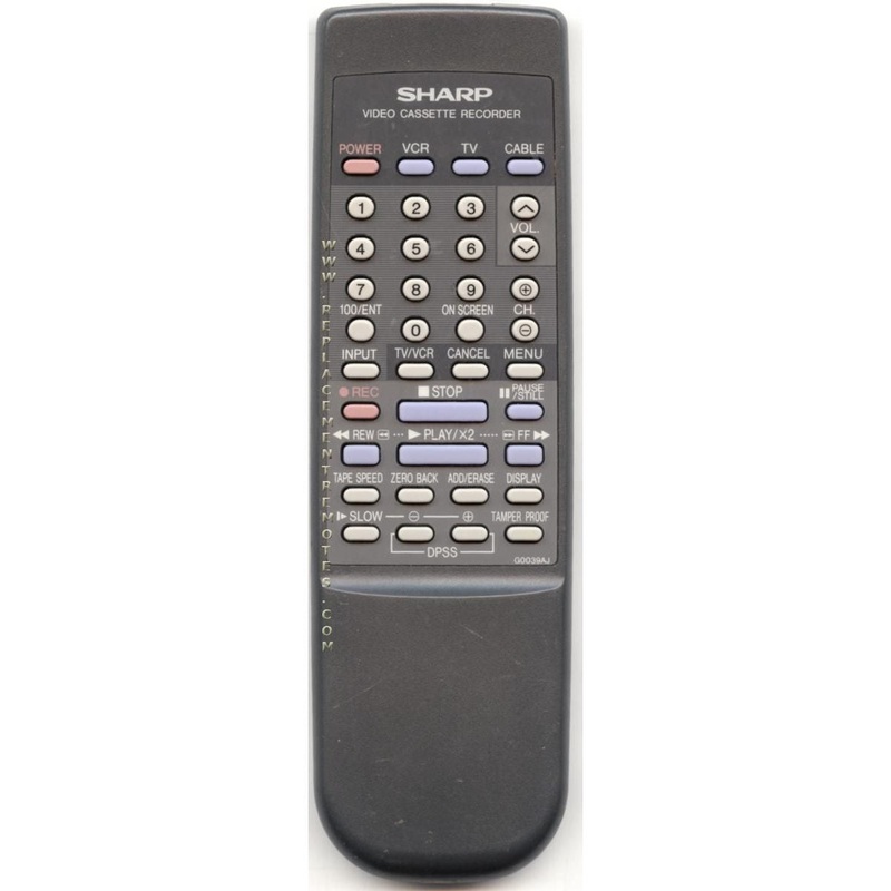Sharp RRMCG0039AJSA VCR Remote Control
