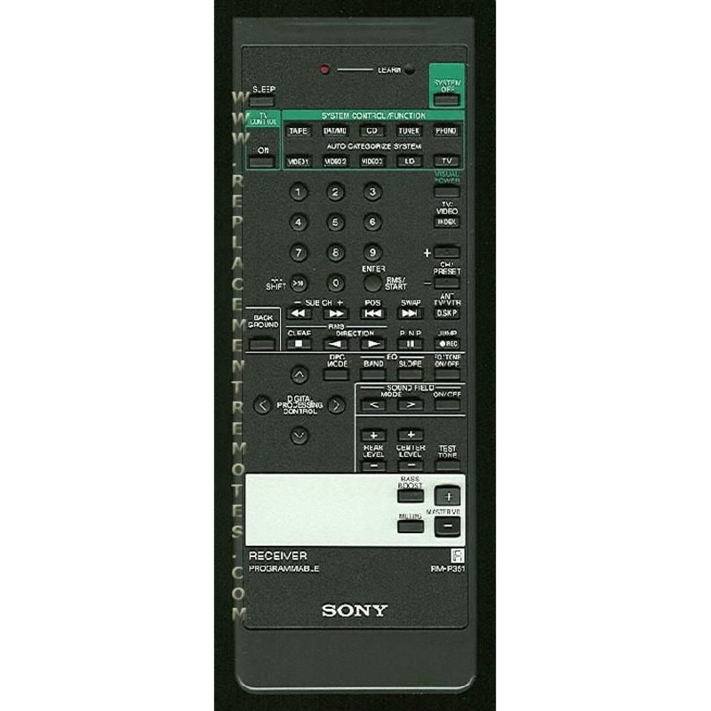 MODEL: RM-P351PN: 147306821FOR: SONY AUDIO RECEIVER REMOTE CONTROL Originally supplied with models: RMP351, RMU251, STR965, STRD0965, STRD96, STRD965U
