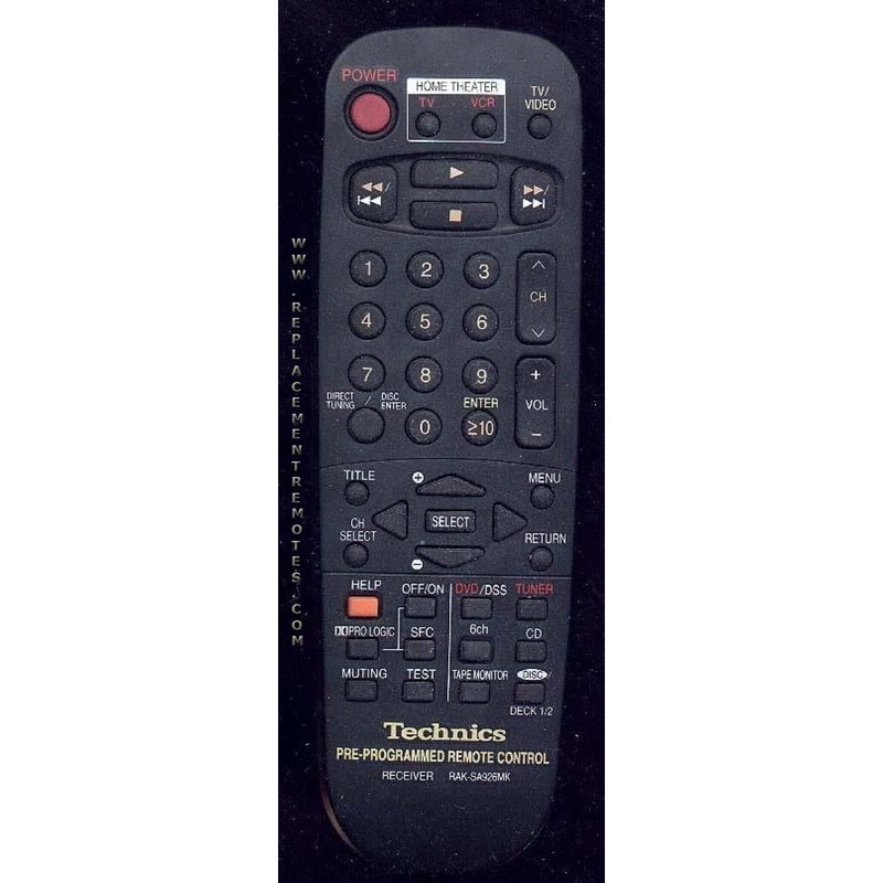 MODEL: RAKSA926MKTECHNICS PRE-PROGRAMMED REMOTE CONTROL Originally supplied with models: SAAX70, SAAX710, SAAX710P, SAAX910, SAEX910