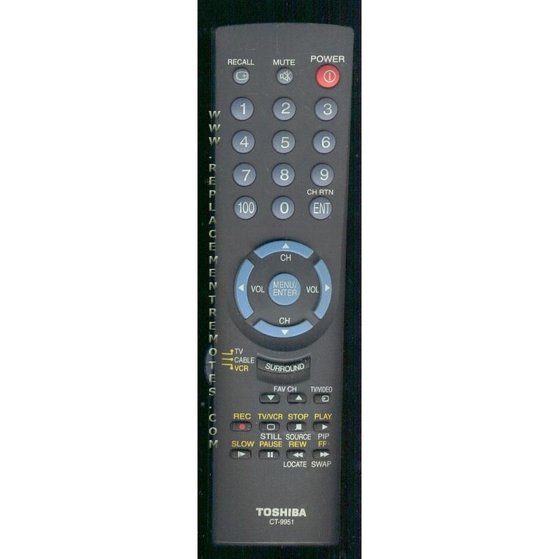 Model: CT-9951pn: 23306266Replaced by: CT-9950Note: These replacement remotes for this product will only work with Toshiba products. And are not programable to a vcr or cable box.P/N 23306266 Originally supplied with models: CF27H50, CF32H50, CF36H50, CL29