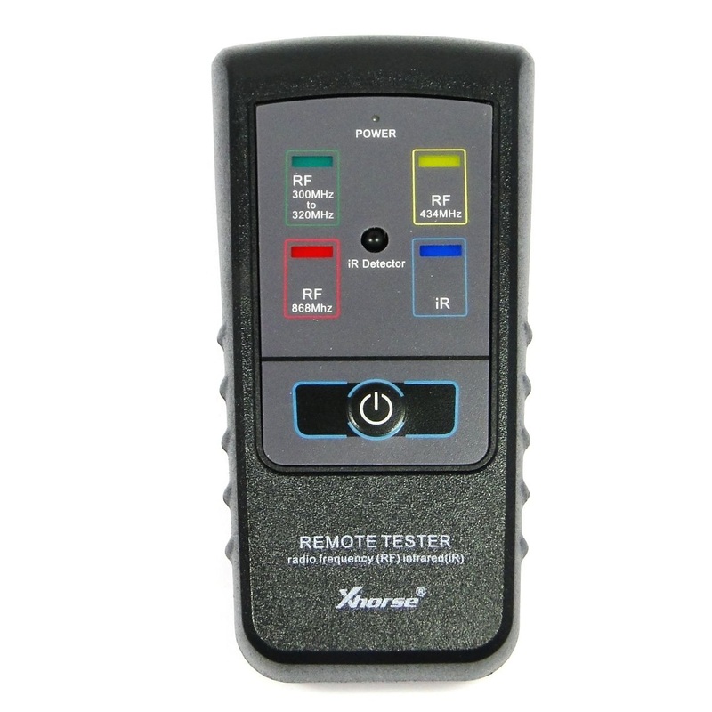 XHORSE Key Fob, Keyless Entry Remote, Smart Key Tester Radio Frequency (RF) Infrared (IR)Frequency test range:1. 300Mhz-320Mhz2. 434Mhz3. 868Mhz4. Infrared (IR) How to test the remote frequency and/or iR:Put the remote control close to the device and press